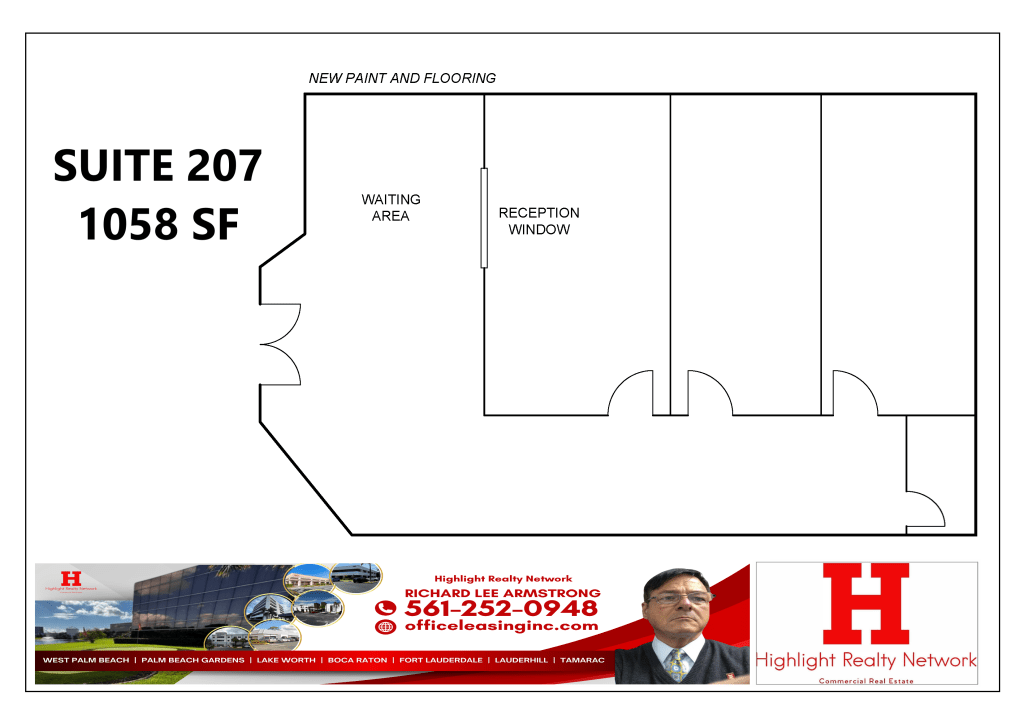 We have 1058 SF Suite 207 Professional and Medical Office Space at 7200 West Commercial Blvd., Lauderhill, FL 33319, with three free months’ rent. Come and visit our office space, which is available now. We are committed to providing exceptional service to our tenants and maintaining a safe and enjoyable working environment. If you have any questions or want to schedule a building tour, please get in touch with us at [561-252-0948] or [Highlightrealtynetworkrla@gmail.com]. We are excited to hear from you and may welcome you as a new tenant in our building. Thank you for considering us as your new home in Lauderhill, FL.