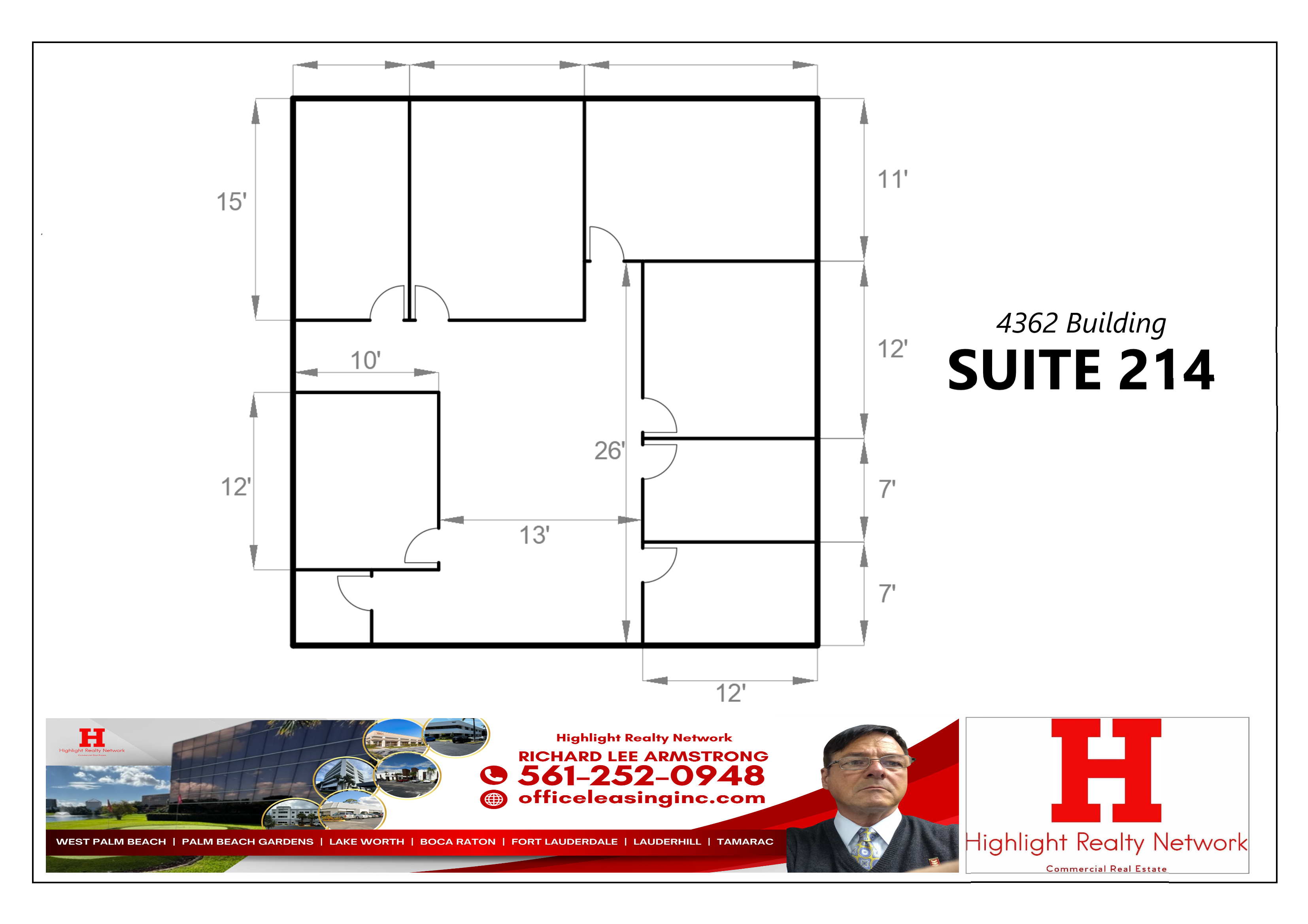 This 1534 SF Suite 214 Professional and Medical Office Space is available at 4362 Northlake Blvd, Palm Beach Gardens, FL 33410, with 3 Free Months of Rent on base rent, one per year. It is a very affordable price for you and your business. Visit now and make an appointment today. We are committed to providing exceptional service to our tenants and maintaining a safe and enjoyable working environment. If you have any questions or want to schedule a building tour, please contact us at [561-252-0948] or at [Highlightrealtynetworkrla@gmail.com]. We are excited to hear from you and may welcome you as a new tenant in our building. Thank you for considering us as your new Palm Beach Gardens, FL home.