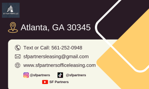 We have 17,622 SF Suite B 400 Professional Office Space in Atlanta, GA 30345, with three free months’ rent. Come and Visit our Office Space. We are committed to providing exceptional service to our tenants and maintaining a safe and enjoyable working environment. If you have any questions or would like to schedule a building tour, please contact us at [1-561-252-0948] or email us at [sfpartnersleasing@gmail.com]. We are excited to hear from you and may welcome you as a new tenant in our building. Thank you for considering us as your new home in Atlanta, GA.