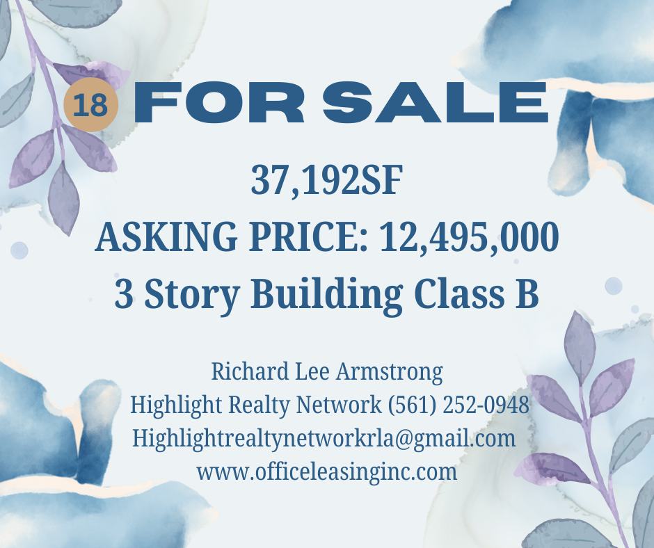 We are pleased to offer a rare opportunity to invest in a prime downtown office tower. This 37,192-square-foot office tower presents an exceptional opportunity for investors to acquire a prime commercial asset with immediate income potential and long-term growth prospects. For further discussion or to schedule a viewing, please reach out to Richard Lee Armstrong at Highlight Realty Network via (561) 252-0948 or Highlightrealtynetworkrla@gmail.com.