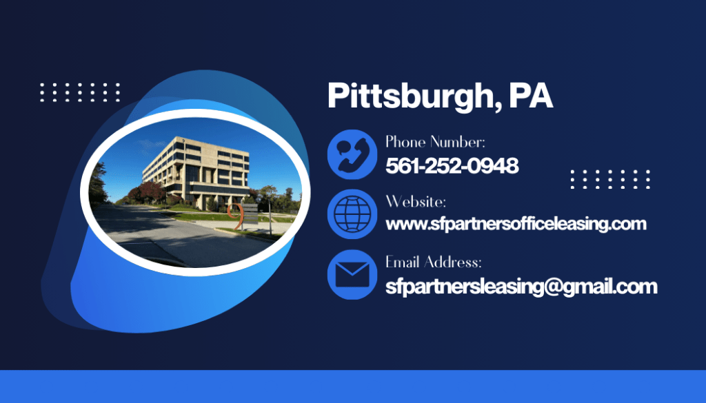 This 5771 SF Suite 430 Professional and Medical Office Space is Available for Rent. It is located in Pittsburgh, PA 15220, with 3 FREE MONTHS, with the rate including utilities, building services, and property expenses. Additionally, this workspace is spacious and will keep you comfortable as you work, making it ideal for your business. Talk to us and book your viewing now! We are committed to providing exceptional service to our tenants and maintaining a safe and enjoyable working environment. If you have any questions or would like to schedule a building tour, please get in touch with us at [1-561-252-0948] or email us at [sfpartnersleasing@gmail.com]. We are excited to hear from you and may welcome you as a new tenant in our building. Thank you for considering us as your new home in Pittsburgh, PA.