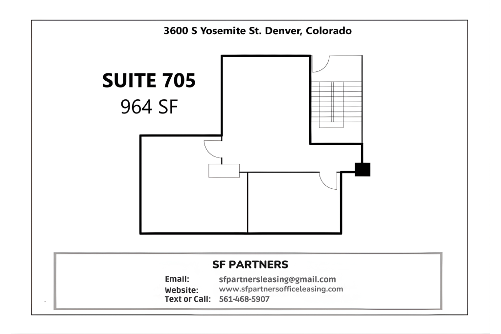 This 964 SF Suite 705 offers a great use of space, good and great pricing, and flexible negotiable terms. It is truly the best place for your business in Denver. We are committed to providing exceptional service and a safe, enjoyable working environment for all our tenants. Don’t wait! Book your viewing now and discover the perfect office space that will benefit your business for years to come.